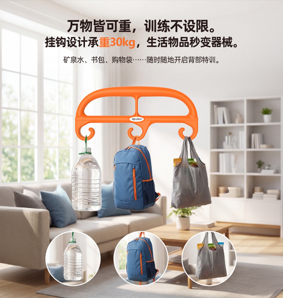 • 挂钩式结构——就地取材,想练就练